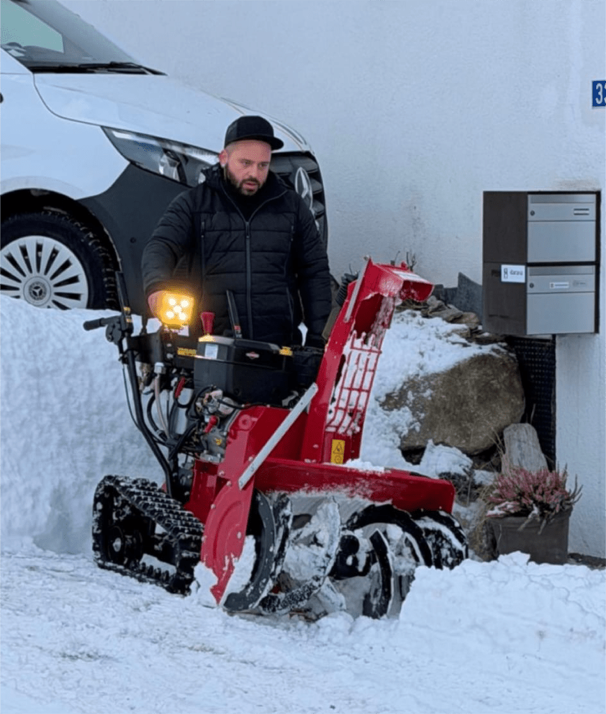 Schneeräumung und Streudienst für Wege, Zufahrten und Parkplätze.